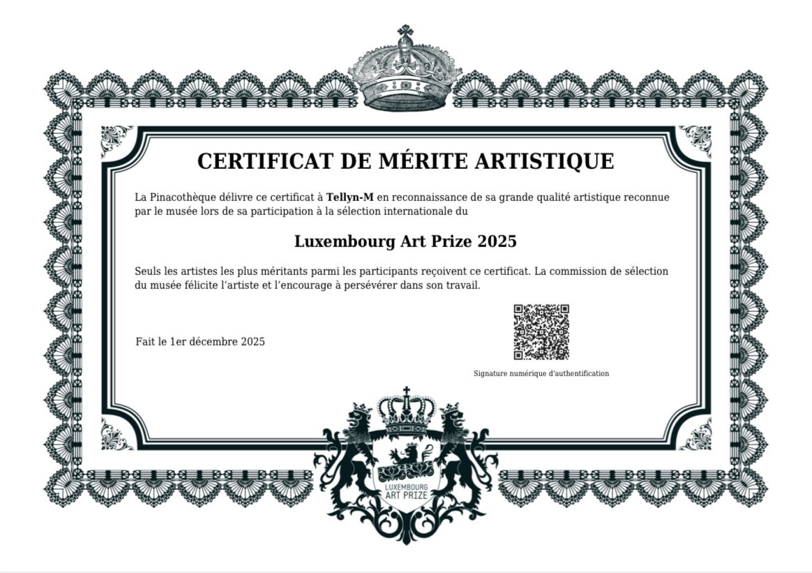 Luxembourg Art Prize 2025 — Certificat de Mérite Artistique